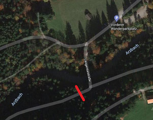 Achtung: die Schranke nach dem hinteren Parkplatz wurde abgebaut, und ca. 50 m nach der ersten Brücke neu installiert, also gleich nach dem ersten Parkplatz. Das Schloß ist noch